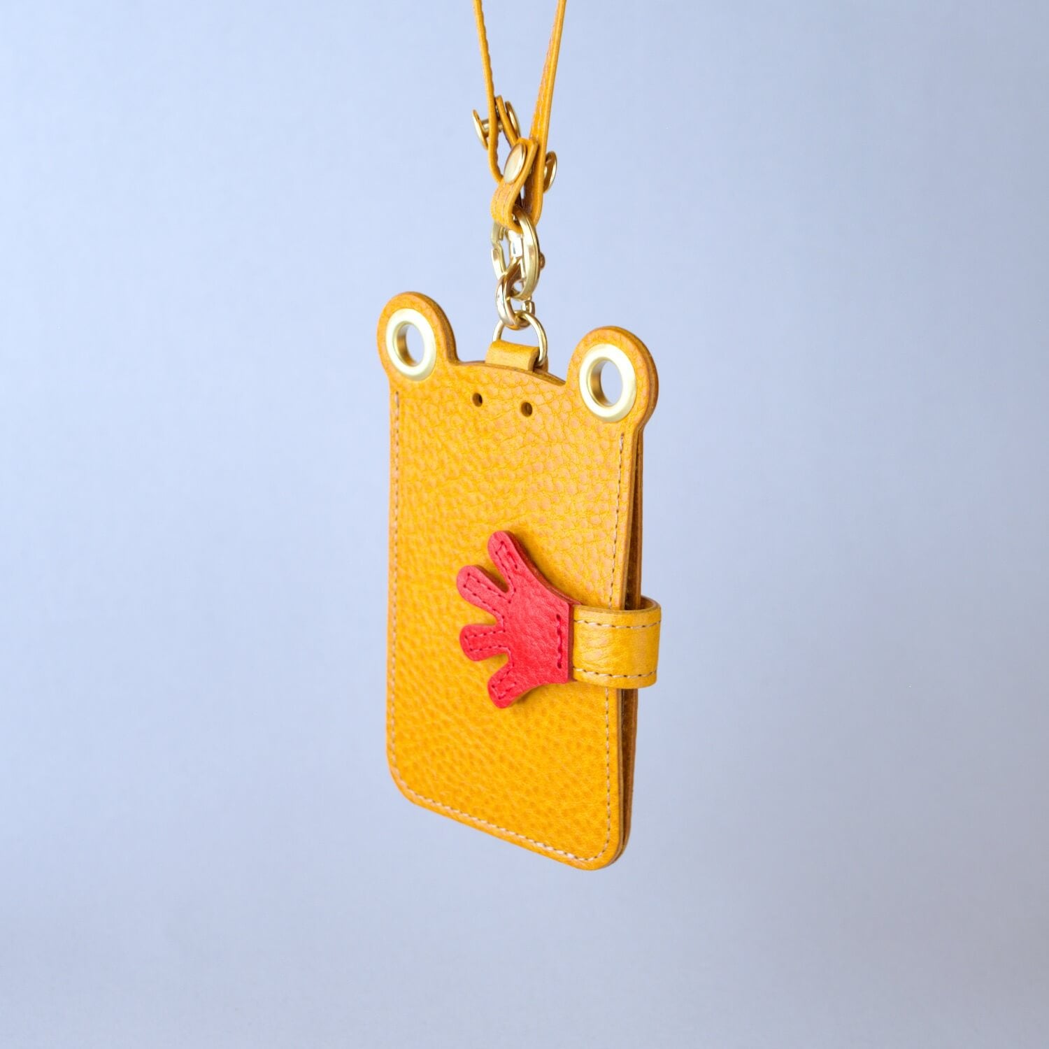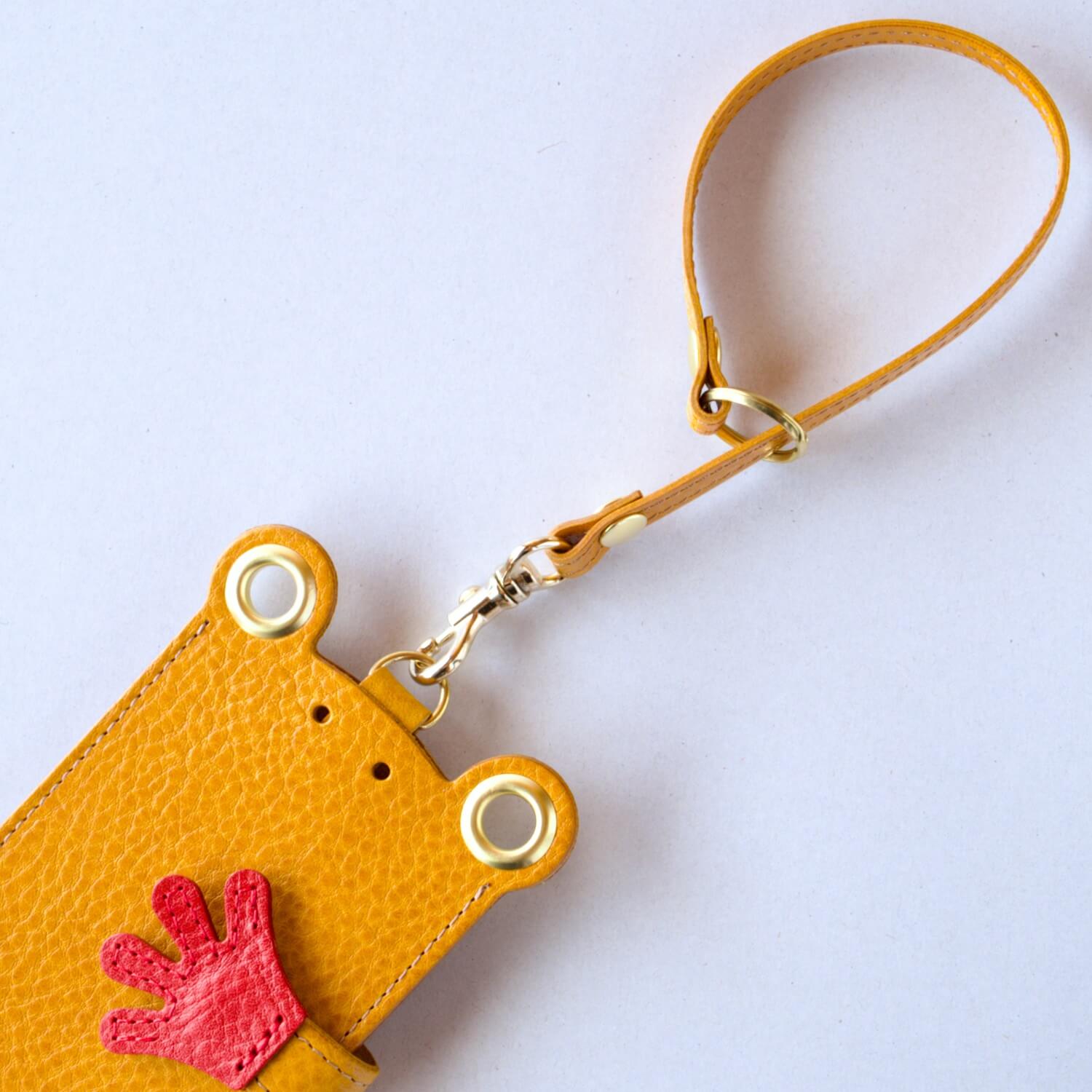 バッグにぶらさがってゆれる姿がなんとも愛らしい、カエルのパスケースです。